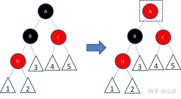 接下来,我们让结点B变为黑色,结点A变为红色: