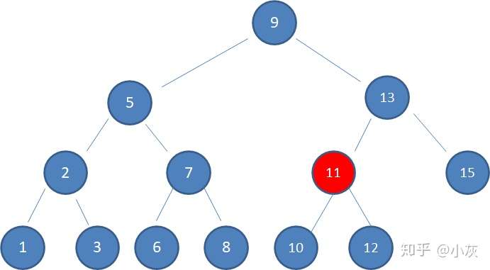 4.由于10 < 11,因此查看左孩子10,发现10正是要查找的结点: