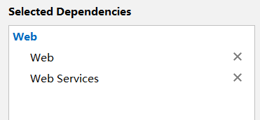 在勾选Dependencies时,选上web和Web Services,选择Web Services后,自己新增的Controller才会被自动识别。