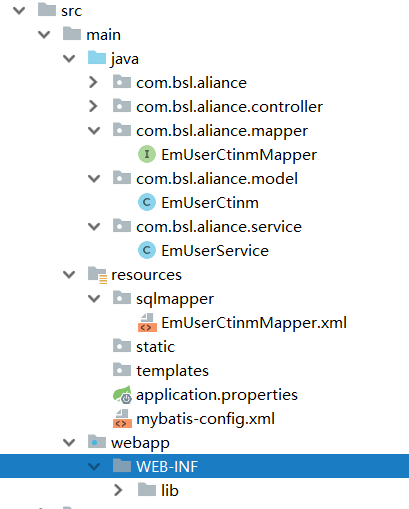 3. resource目录下的EmUserCtinmMapper.xml配置sql语句。