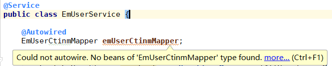4. EmUserService通过调用EmUserCtinmMapper提供外部服务。有点类似于BO。注意这里会有错误提示,但不影响工作。