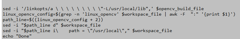 sed -i "$path_line i\ path = \"/usr/local/opencv\"," $workspace_file
