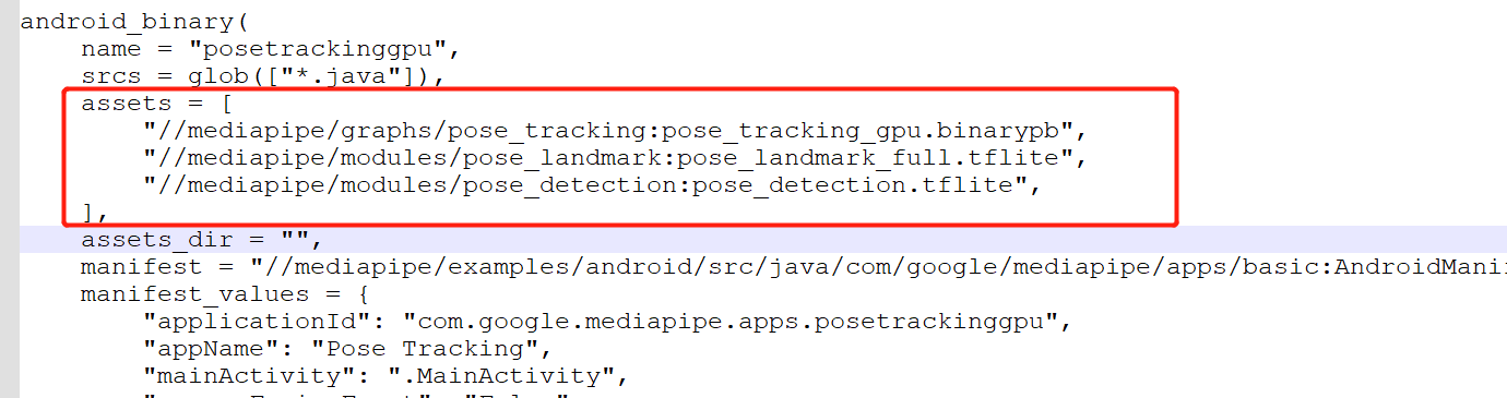 其它的assets 具体见 mediapipe/examples/android/src/java/com/google/mediapipe/apps/posetrackinggpu/BUILD中的assets节点