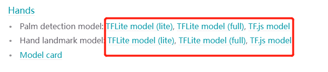下载地址: https://google.github.io/mediapipe/solutions/models 介绍了解模型需要的资源 , 还有其它资源开发也会用到