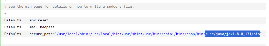 应该是修改/etc/sudoers这个文件,在当前文件中添加java路径