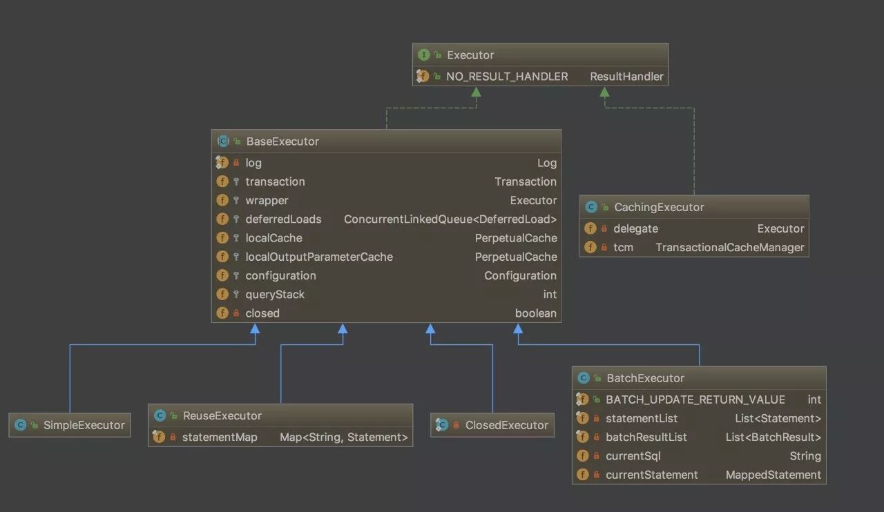 BaseExecutor: BaseExecutor是一个实现了Executor接口的抽象类,定义若干抽象方法,在执行的时候,把具体的操作委托给子类进行执行。