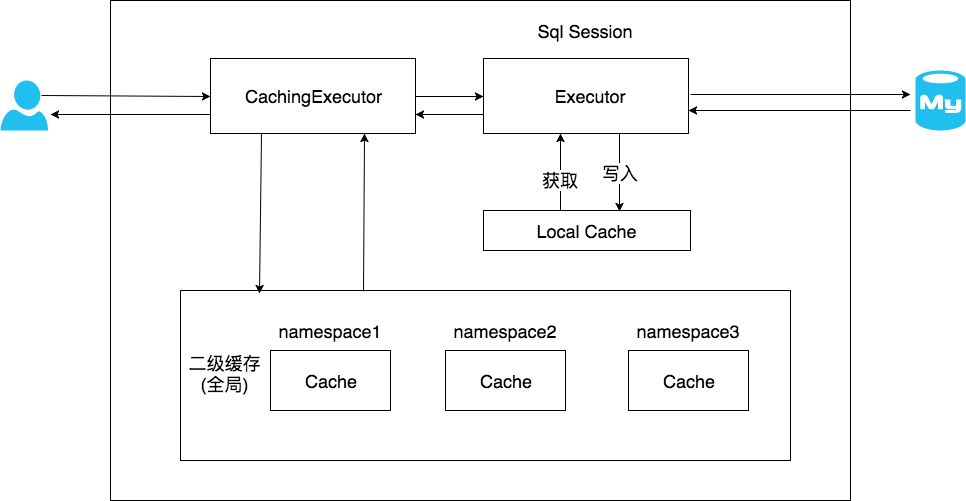 MyBatis的二级缓存相对于一级缓存来说,实现了SqlSession之间缓存数据的共享,同时粒度更加的细,能够到namespace级别,通过Cache接口实现类不同的组合,对Cache的可控性也更强。