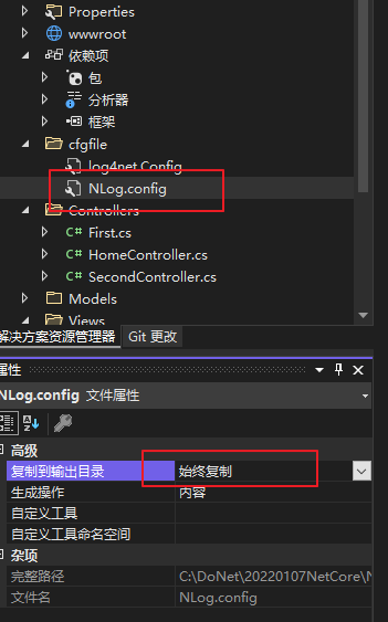 2、增加配置文件,配置Nlog生效