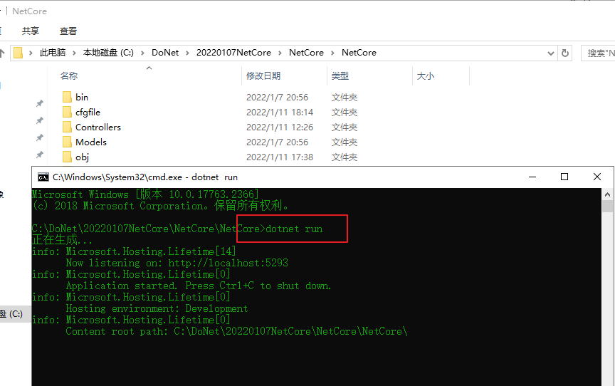 再输入 dotnet run 启动
