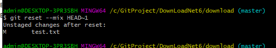 - --mix 折中:回退版本,并会保留所有改动记录,但是不会帮你 git add