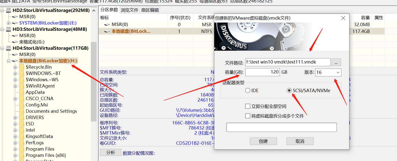 点击左上角磁盘选项->新建虚拟文件磁盘->新建VMware虚拟磁盘文件