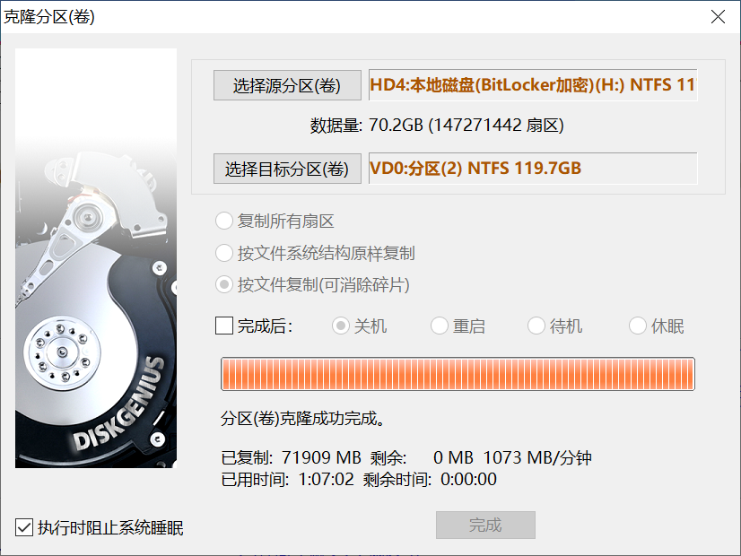 完成,等待克隆完毕就可以了,还是注意不要让系统睡眠,完成后会生成对应的vmdk文件