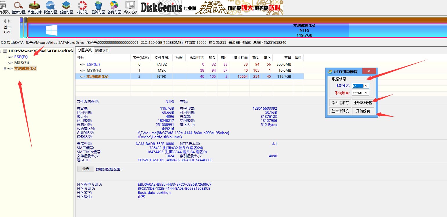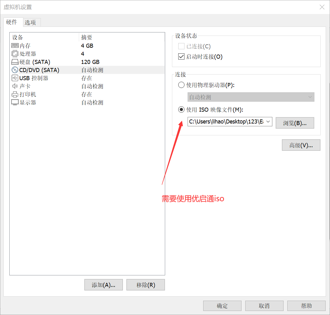 修复成功后,vmware设置选项CD/DVD改成使用物理驱动器登录就可以了