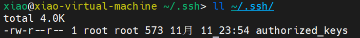 3、在ubuntu内,切换到用户的home文件夹内,创建.ssh文件夹,touch authorized_keys,然后将已经拷贝的公钥字符串写入authorized_keys文件,最后保存