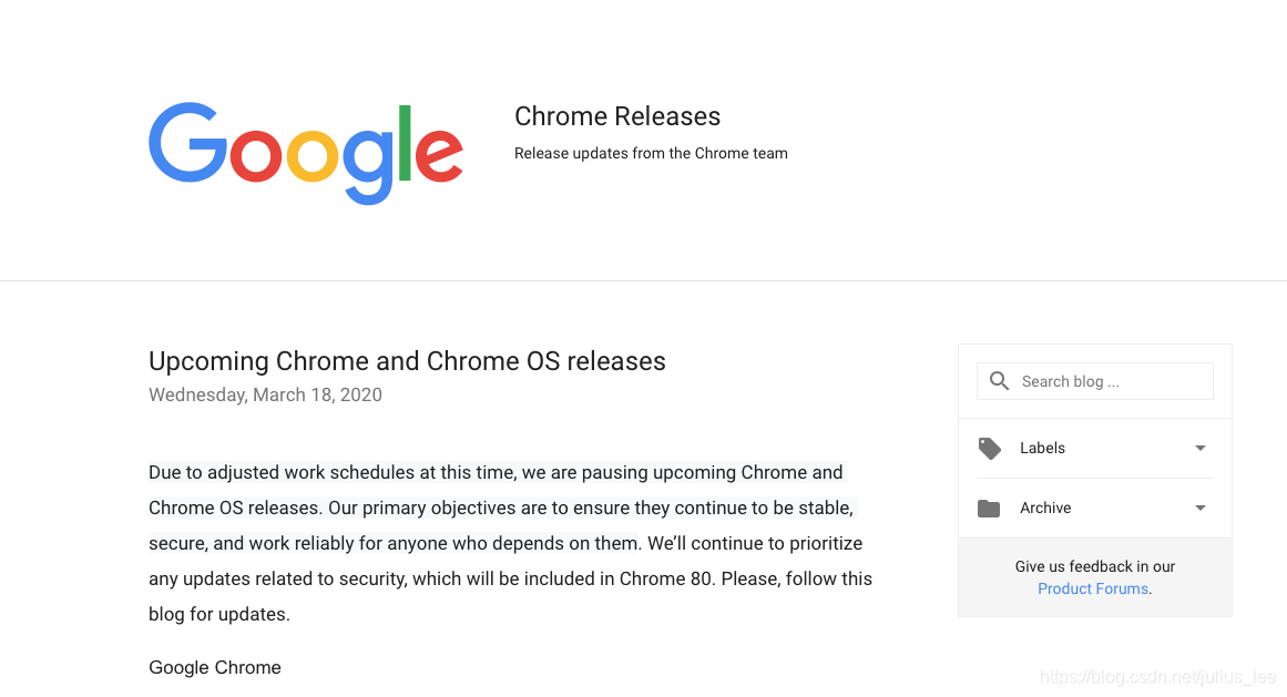 Google早些宣布,由于工作计划已调整,将暂停即将发布的Chrome和Chrome OS版本。