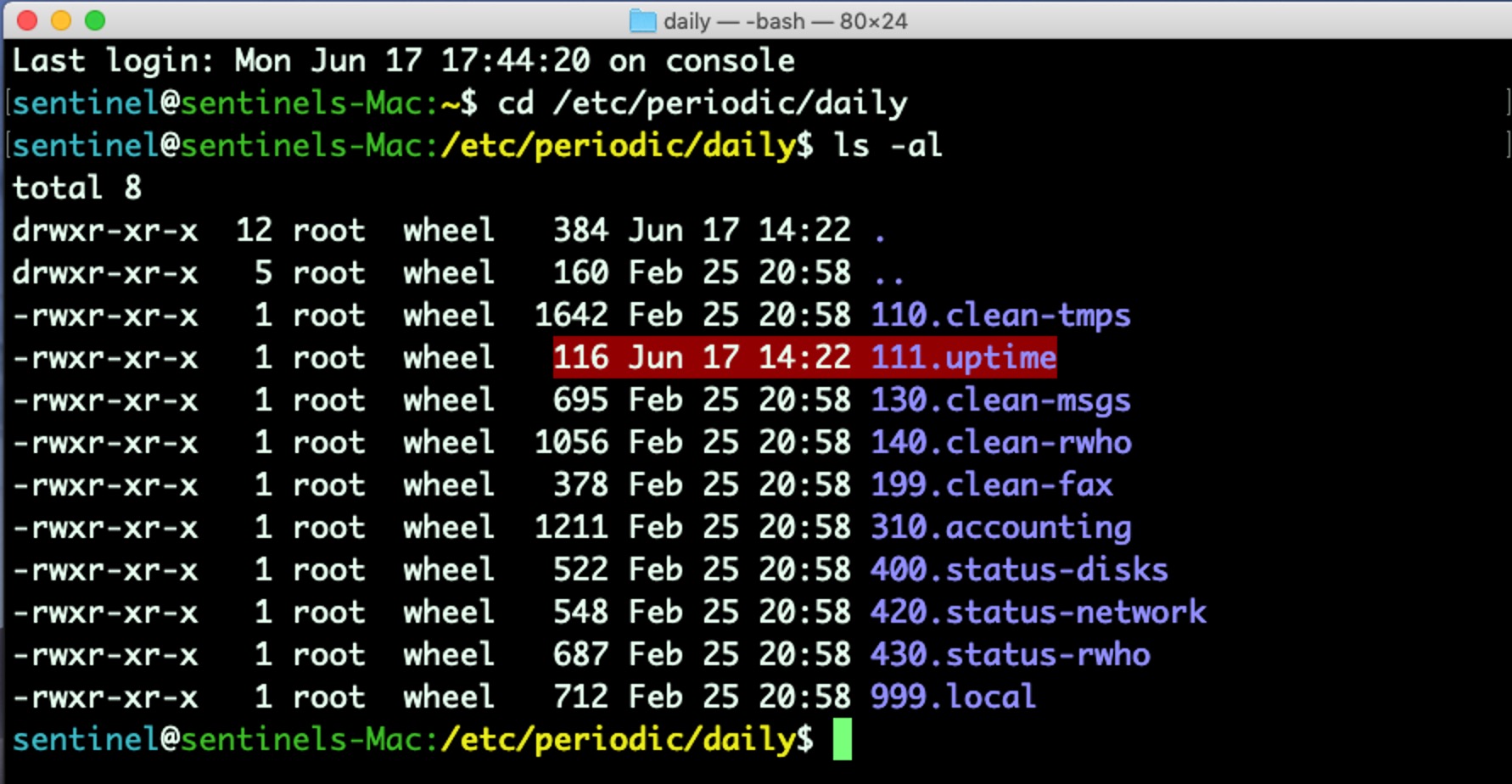 如下图所示,uptime脚本可以在没有用户交互或通知的情况下每天运行。