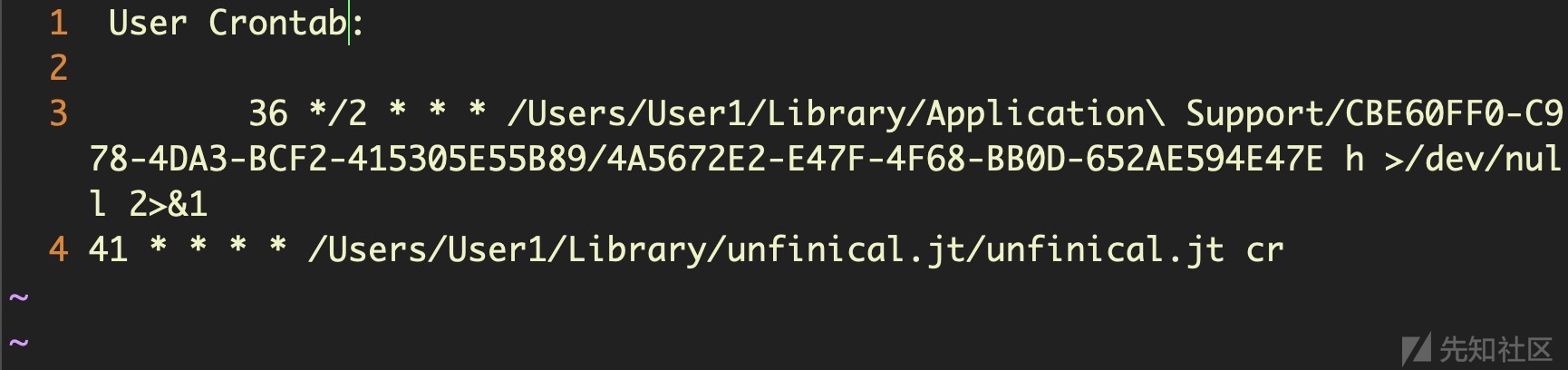 恶意软件开发者还盯上了有漏洞的cron作业。虽然苹果已经宣布新的cron作业要求用户交互在10.15 Catalina上安装,但这并不影响攻击者使用它作为一种驻留的方法。当用户已经被诱使安装了恶意软件,那么用户提示就已经不是一种有效的安全措施了。AdLoad 和Mughthesec恶意软件就使用恶意cron作业来实现驻留。