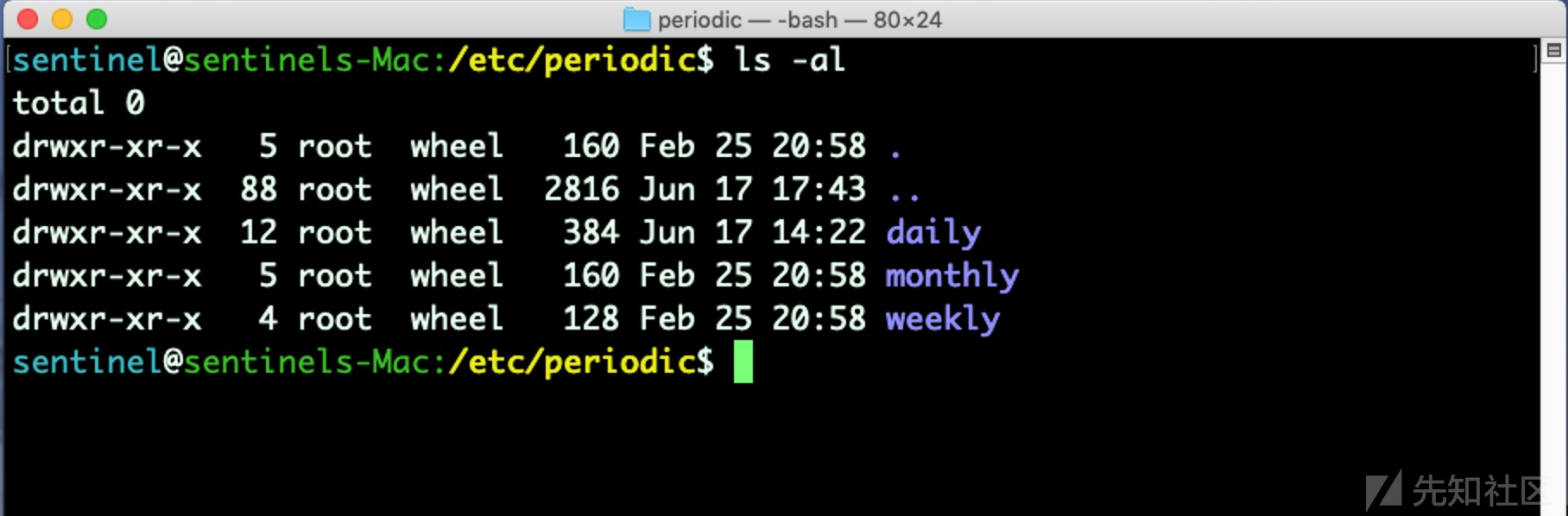 Periodics是常被用于驻留的系统脚本,可以计划每天、每周和每月运行。Periodics的内容保存在文件夹etc/periodic中。