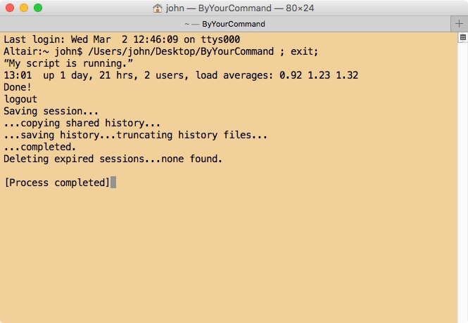 III. Double click the file "ByYourCommand" on the desktop. The Terminal app will launch, the script will be executed, and you'll see the results, like this: