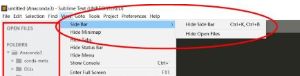 SideBarEnhancements 是sublime的加强侧边栏插件 在View—side bar菜单中可以控制显示或隐藏侧边栏(下图),我们可以将一个项目文件夹拖动到侧边栏中,就可以很方便地对目录下的文件进行可视化管理。
