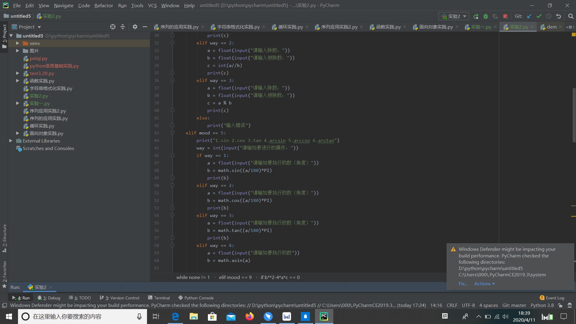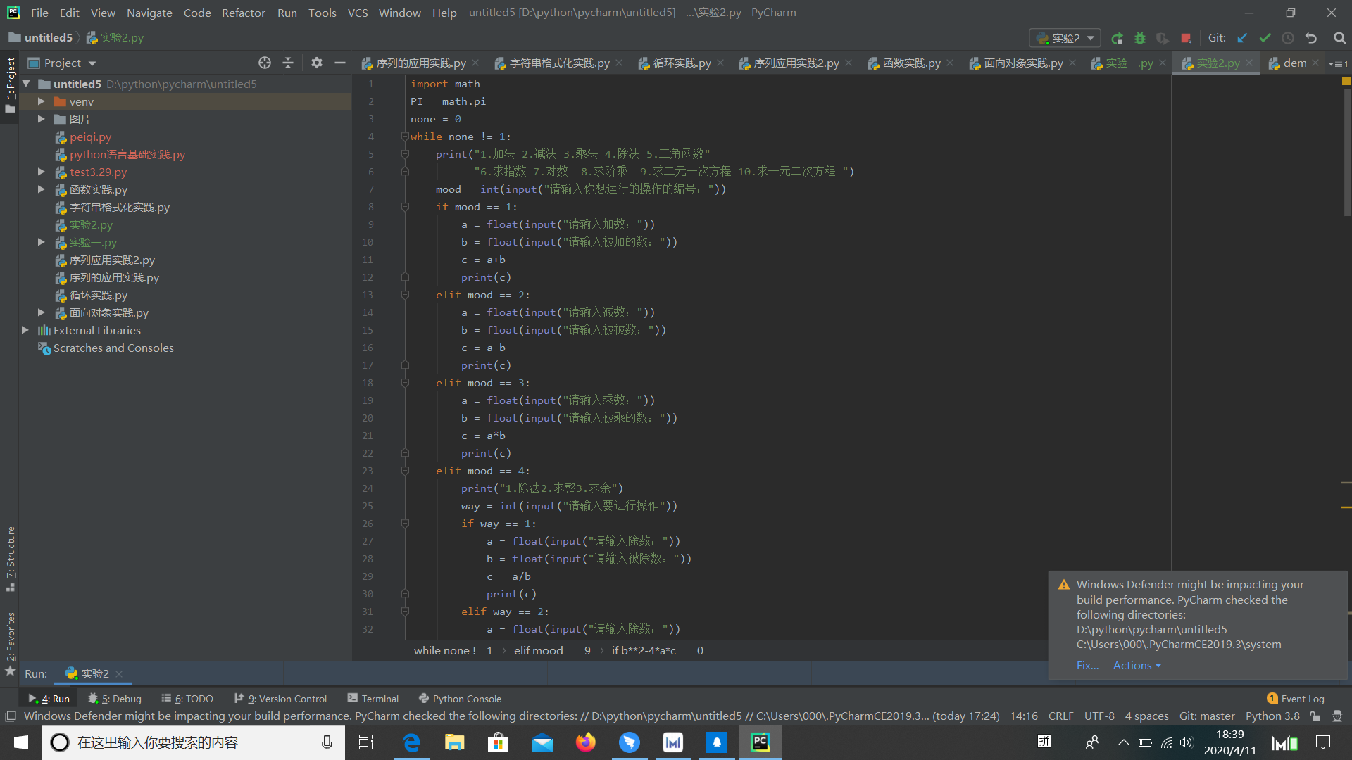 在编写计算器的过程中,我知道了数据类型的重要,在除法时,数据类型不同,即使符号相同,他也不同