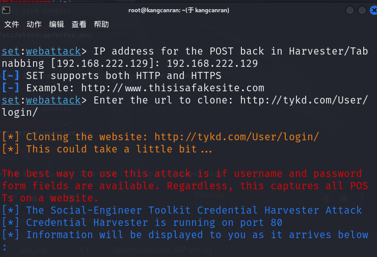 2.3结合应用两种技术,用DNS spoof引导特定访问到冒名网站