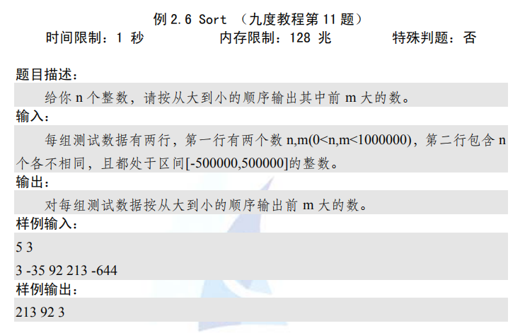 #include<algorithm> #include<string.h> #include<iostream> #include<stdio.h> #include<string.h> #define OFFSET 500000 int Hash[1000001]; int main() { int n, m; while (scanf_s("%d%d", &n, &m) != EOF) { for (int i = -500000; i <= 500000; i++) Hash[i + OFFSET] = 0; for (int i = 1; i <= n; i++) { int x; scanf_s("%d", &x); Hash[x + OFFSET] = 1; } for (int i = 500000; i >= -500000; i--) { if (Hash[i + OFFSET] == 1) { printf("%d", i); m--; if (m != 0) printf(" "); else { printf("\n"); break; } } } } return 0; }