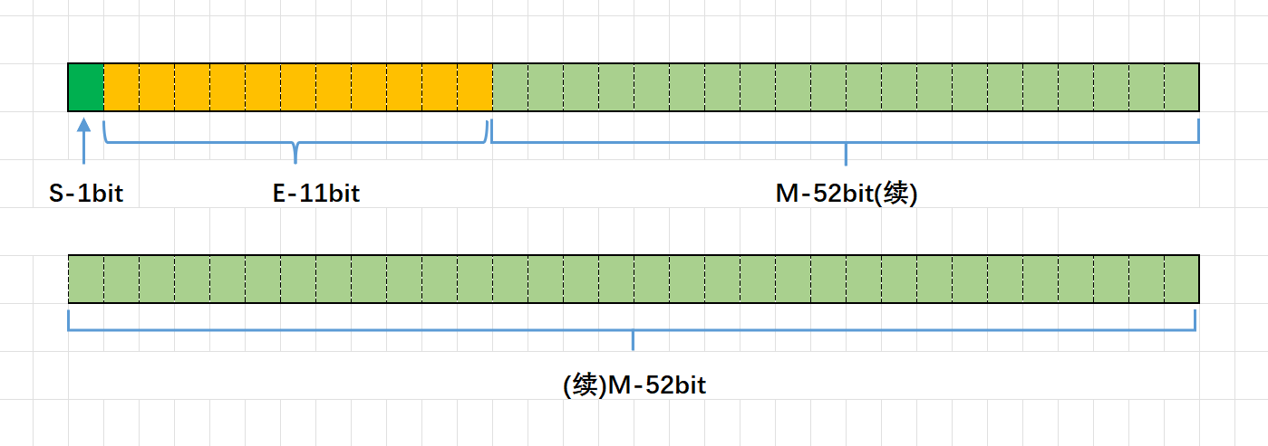 对于64位的浮点数,最⾼的1位存储符号位S,接着的11位存储指数E,剩下的52位存储有效数字M