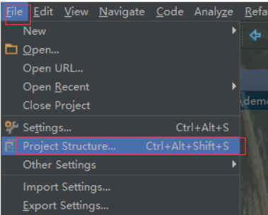 1.选中java项目,选择 File -> Project Structure (快捷键:Ctrl+Alt+Shift+S)。