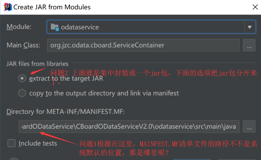 上面的操作这样就会引起开始图的问题。提示无法加载主类,另外一个情况就是所有的外部第三方jar包都被封装到一个jar包里面了。