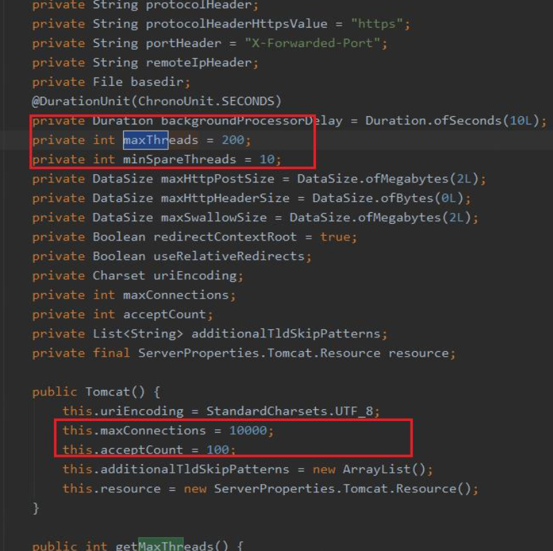 server.tomcat.max-connections:最大可被连接数,默认10000(看版本,高版本的是8192个)