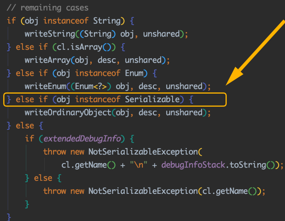按照提示,由源码一直跟到ObjectOutputStream的writeObject0()底层: