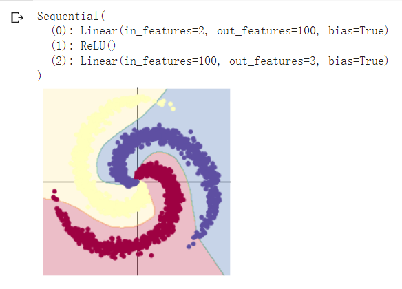 # 这里可以看到,和上面模型不同的是,在两层之间加入了一个 ReLU 激活函数