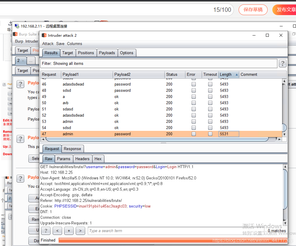 注意,怎么快速从result中找正确的密码? 可据length排序快速找到,因为一般正确的响应参数不一样,所以above的5531的结果就是正确密码