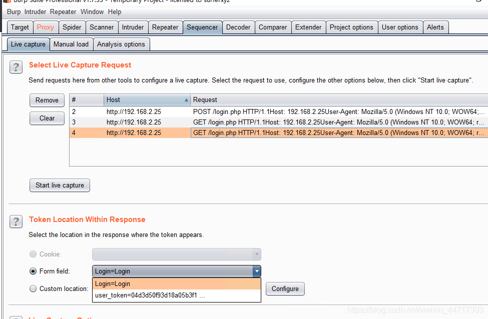 点击Start live capture能使服务器不断发送请求生成新的PHPSESSID,收集到一定量后再进行判断(可以点击Sve tokens进行保存收集到的session ID),生成到足够量的时候可以进行
