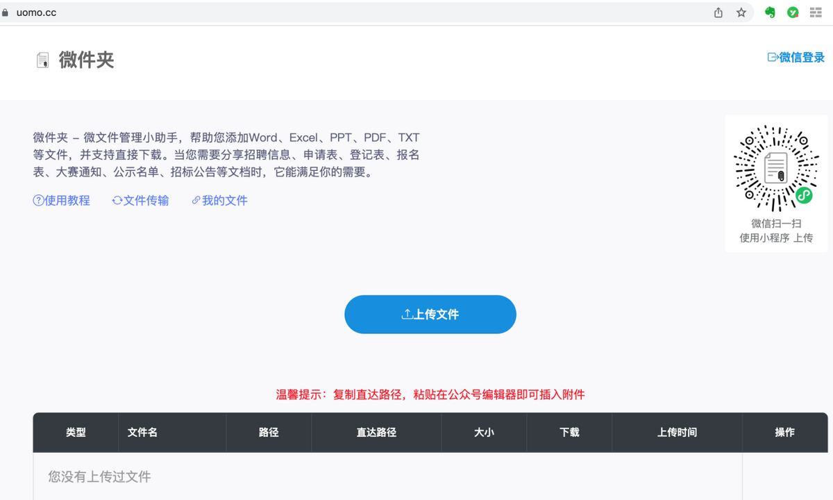 第一步 把承诺书文件上传到微件夹网站https://uomo.cc