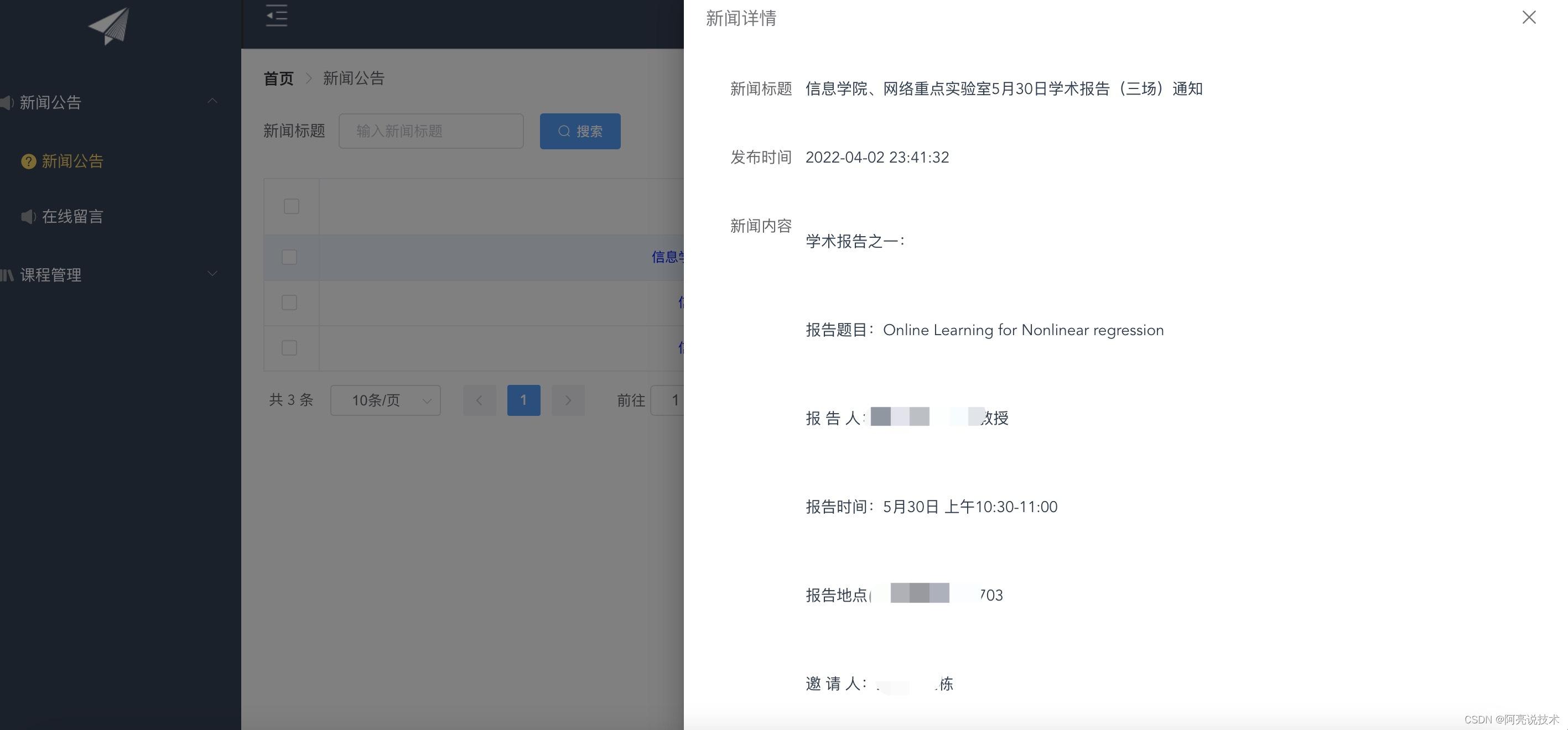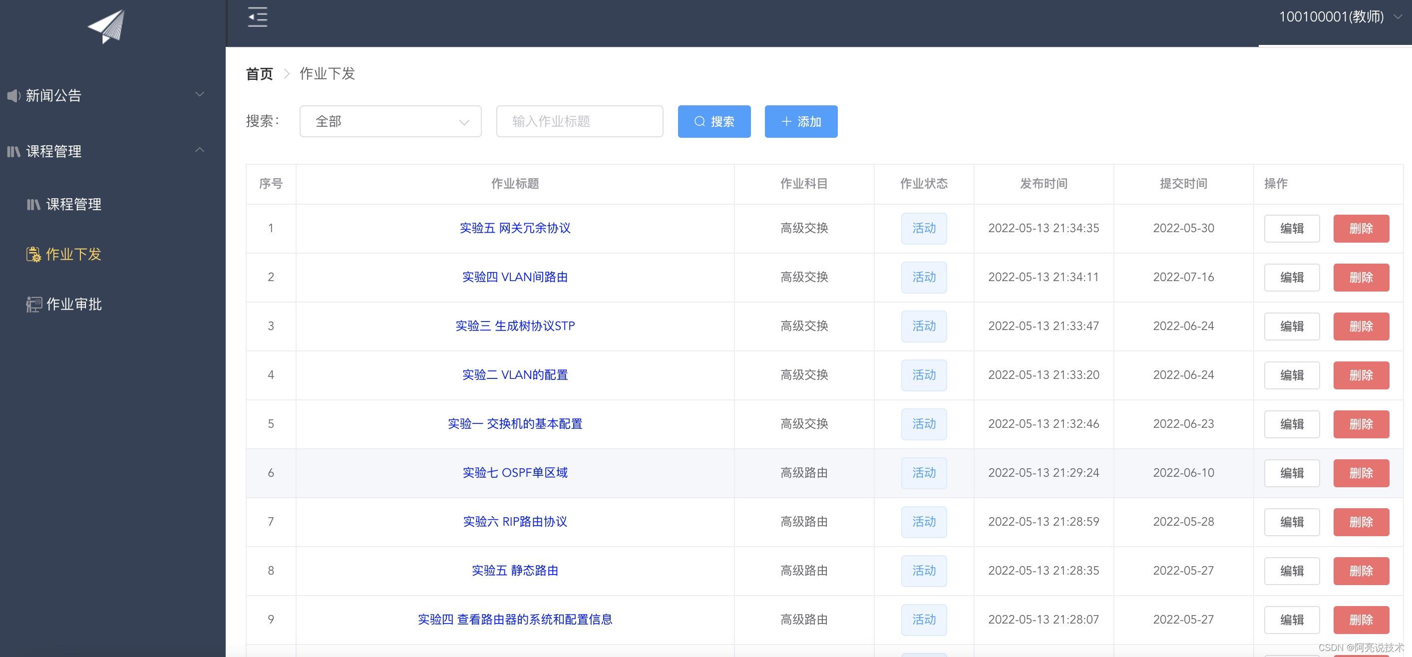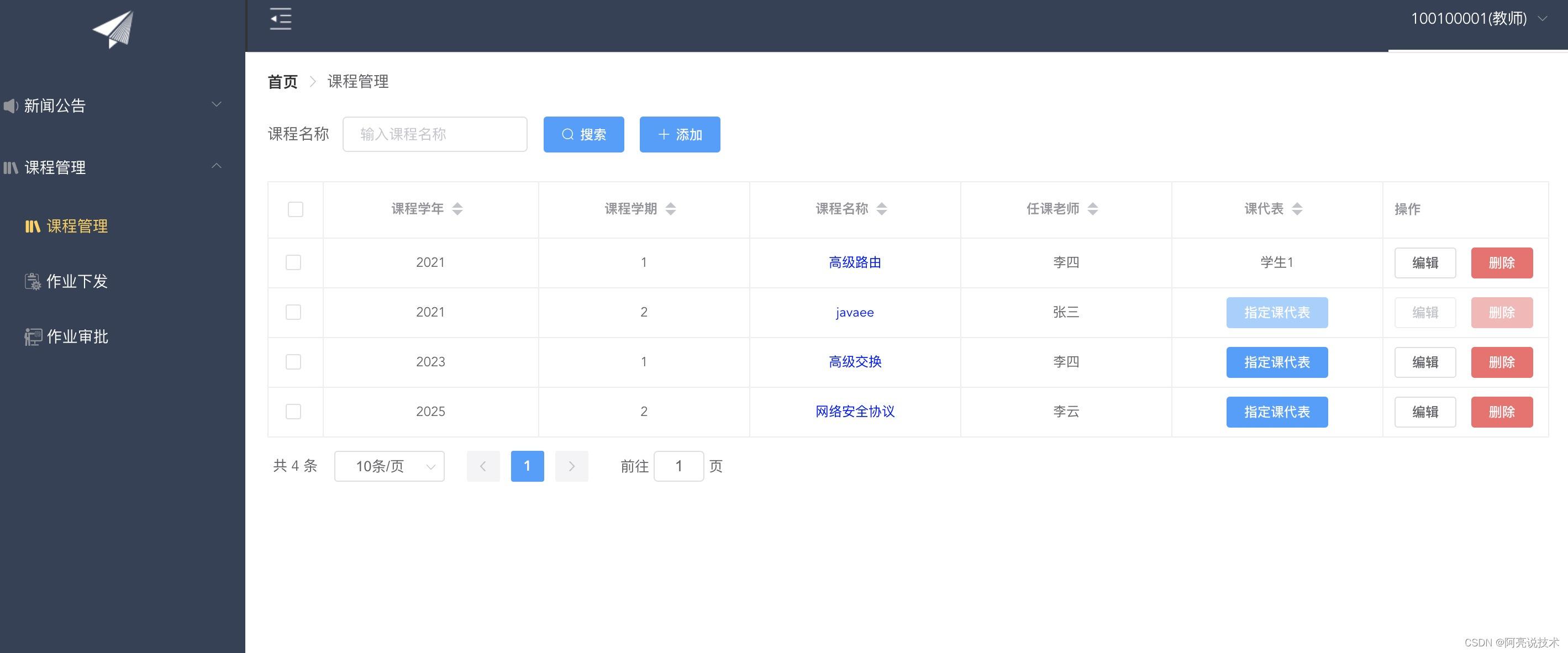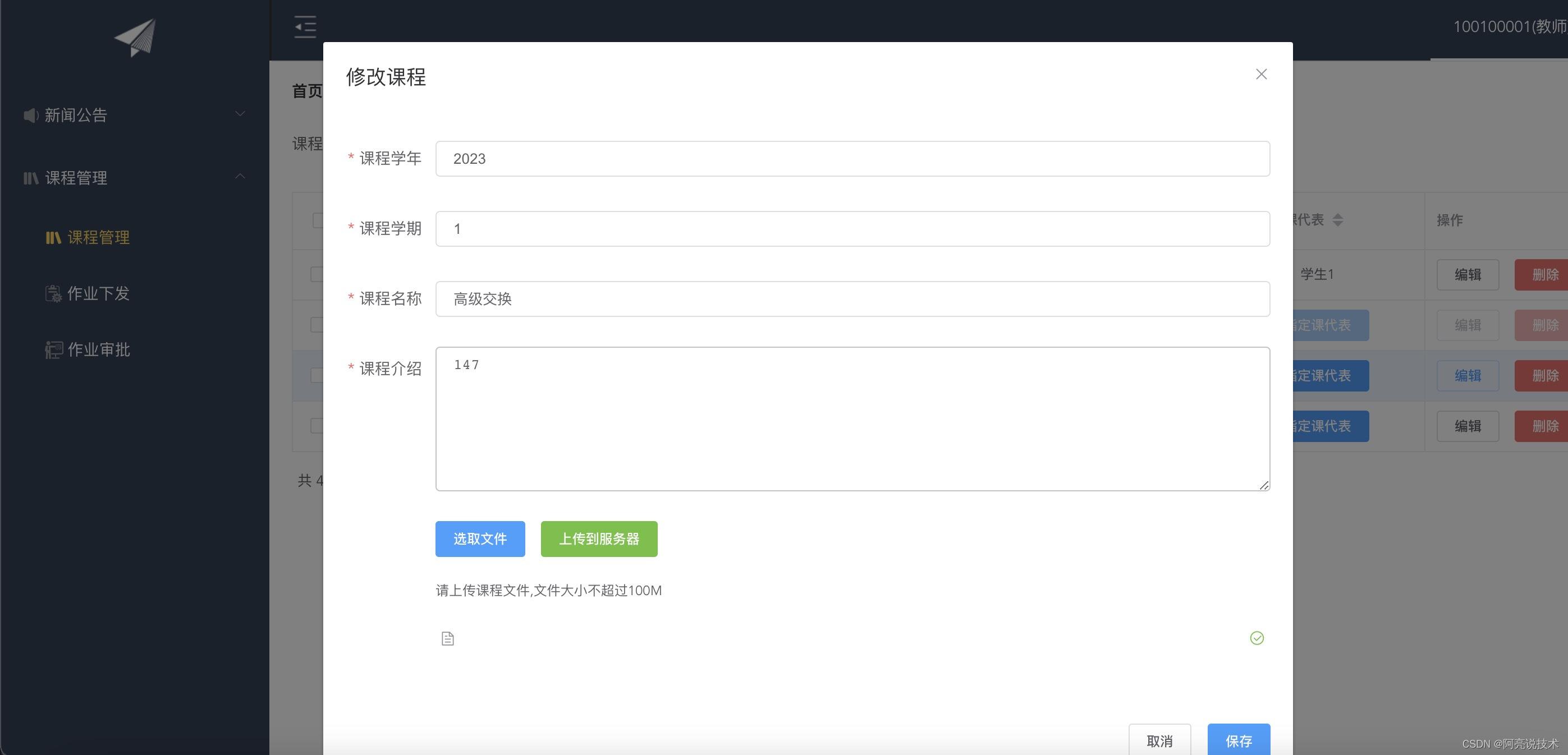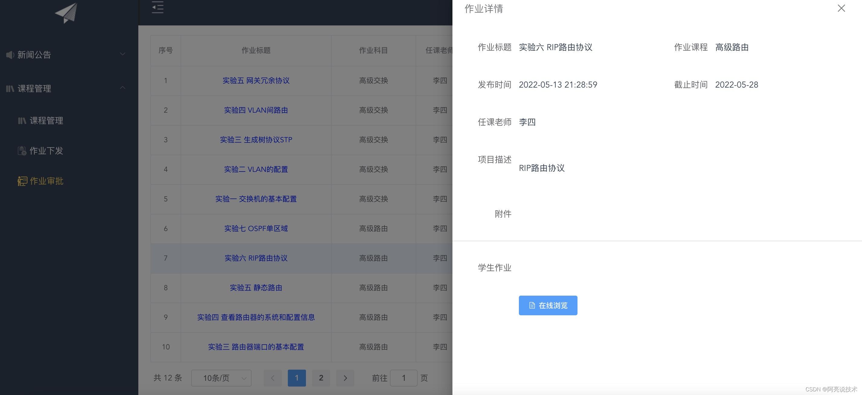 登录 新闻公告 在线留言 课程管理 指定课代表 作业下发 作业审批 评分 在线预览