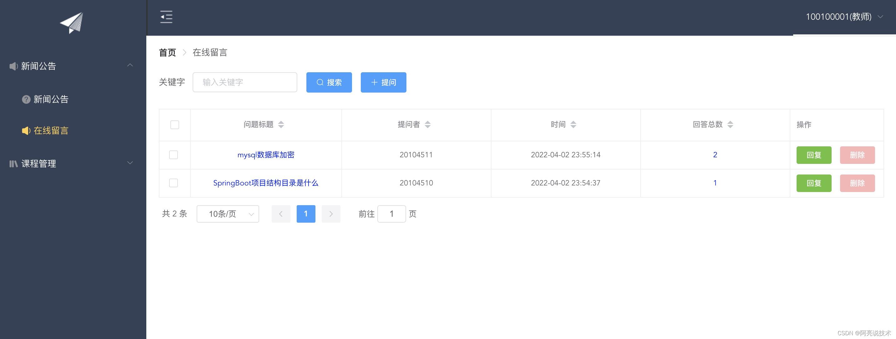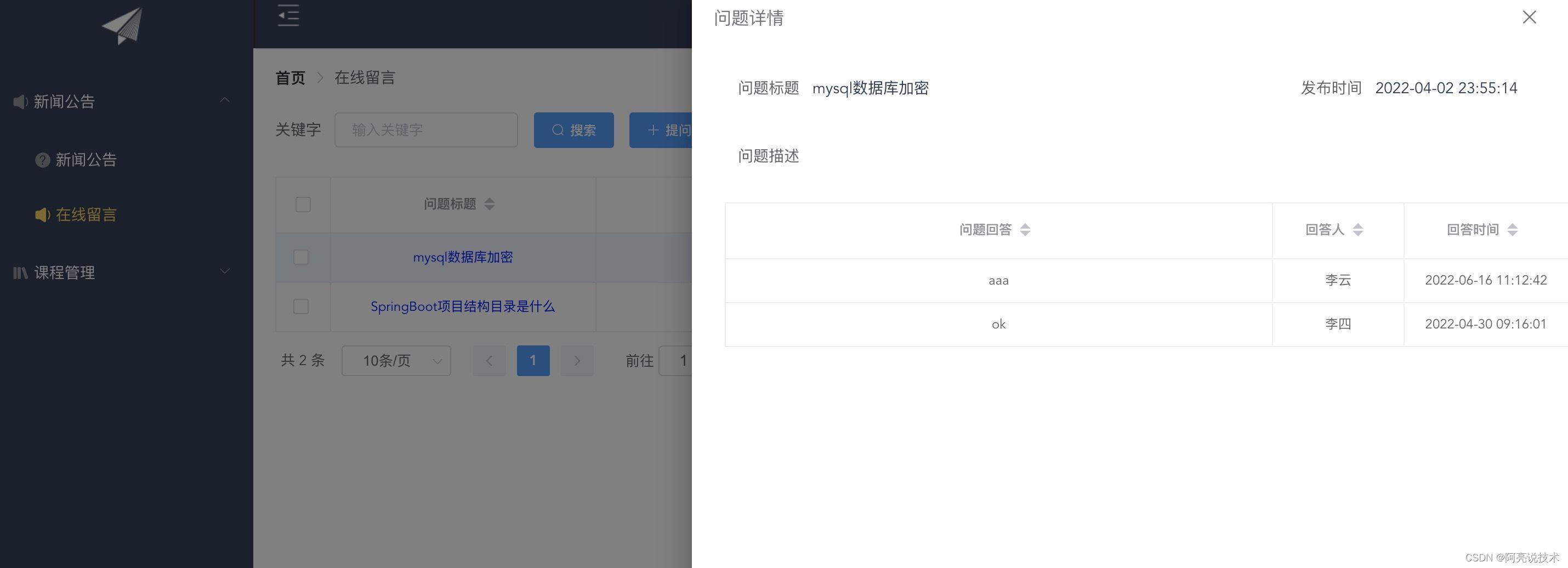 使用技术: SpringBoot或SSM + Mybatis + Mysql + vue(前端)
