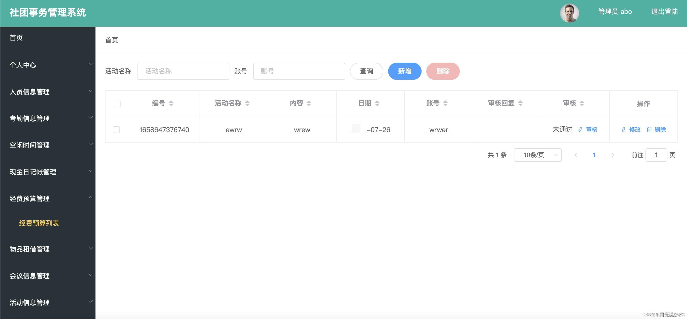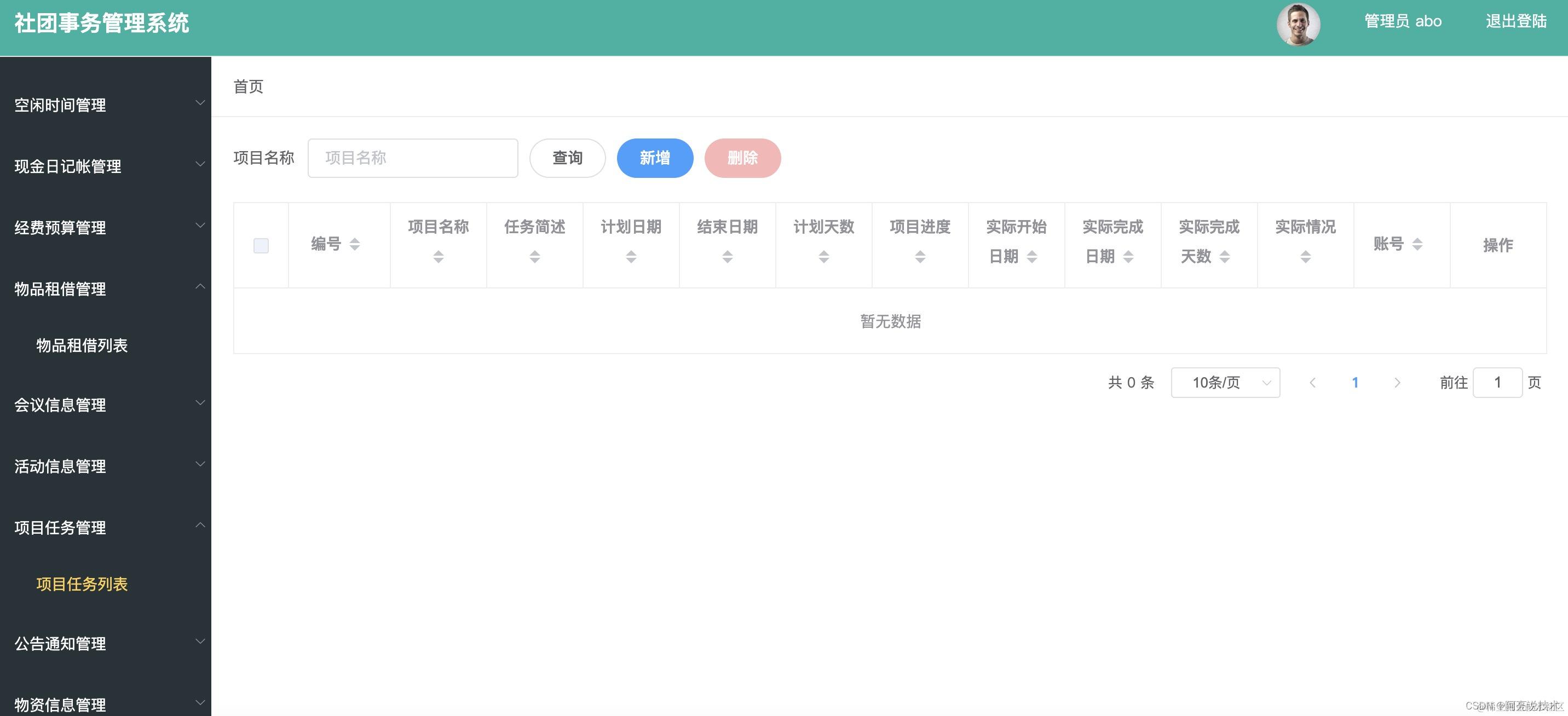 经费预算管理 物品租借管理 会议信息管理 活动信息管理 项目任务管理