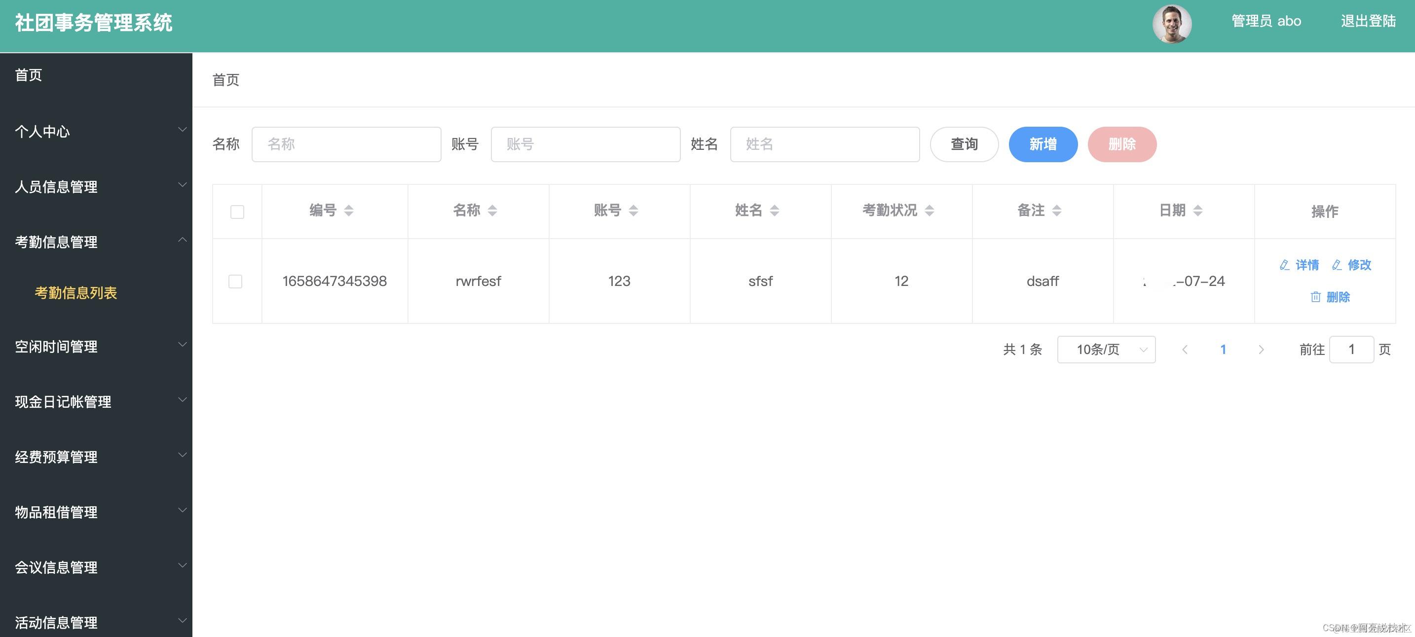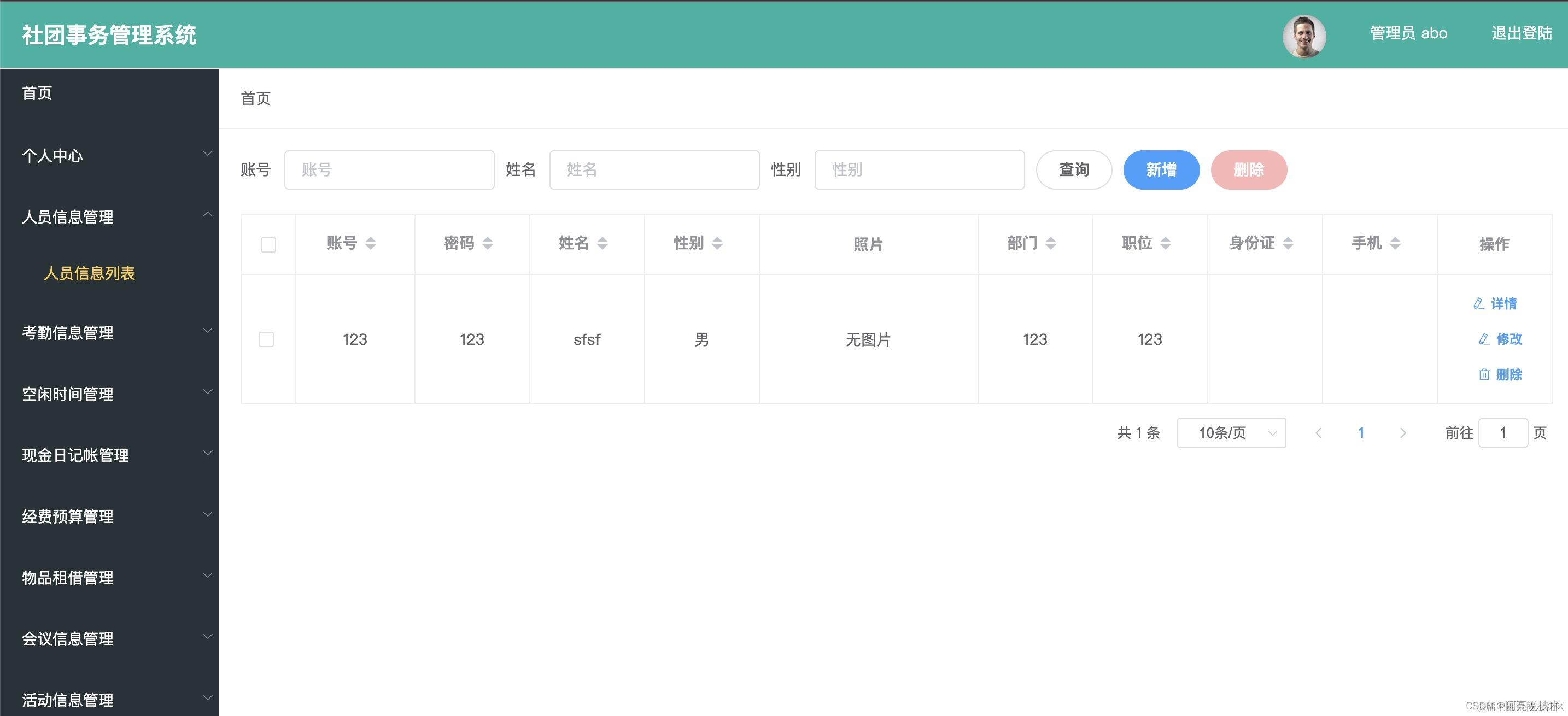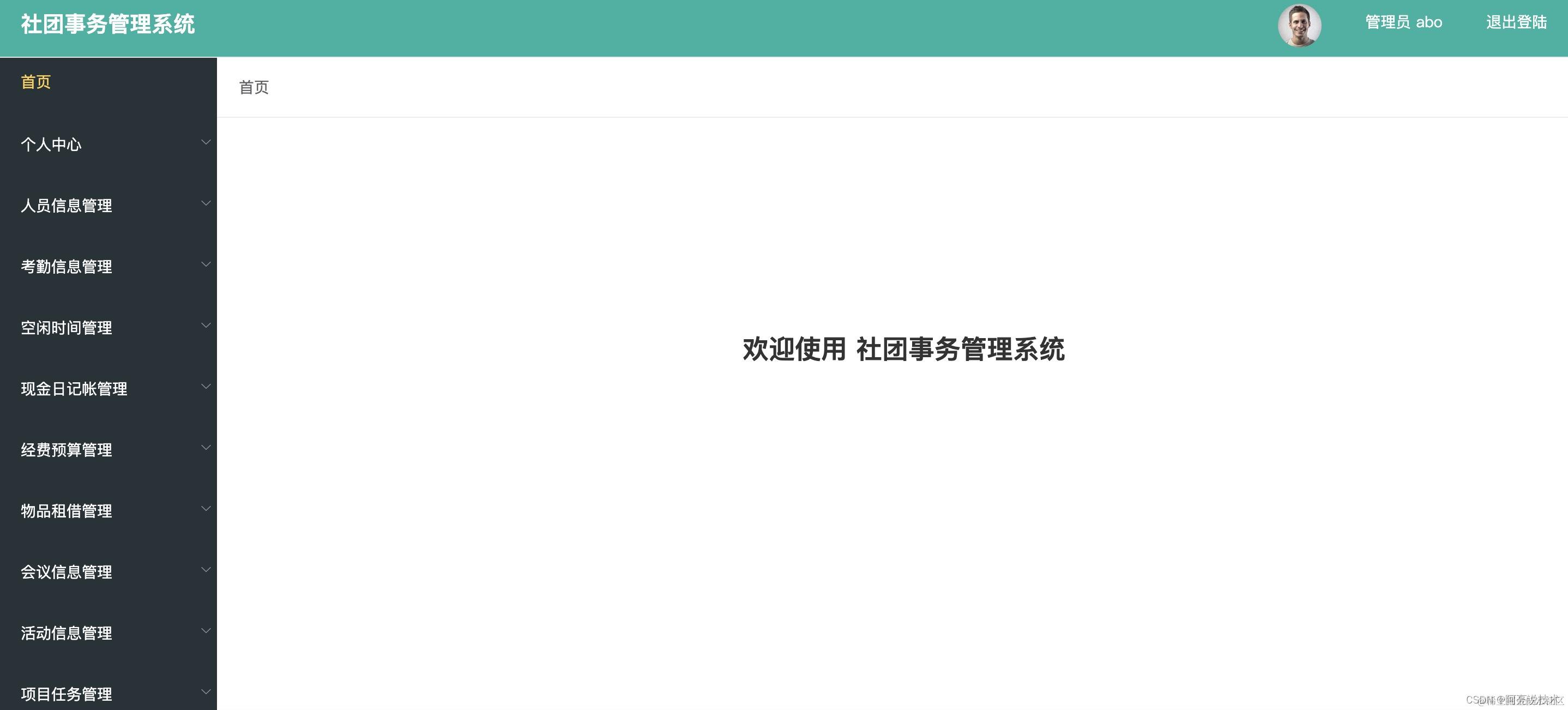 登录 个人中心 人员信息管理 考勤信息管理 空闲时间管理 现金日记账管理