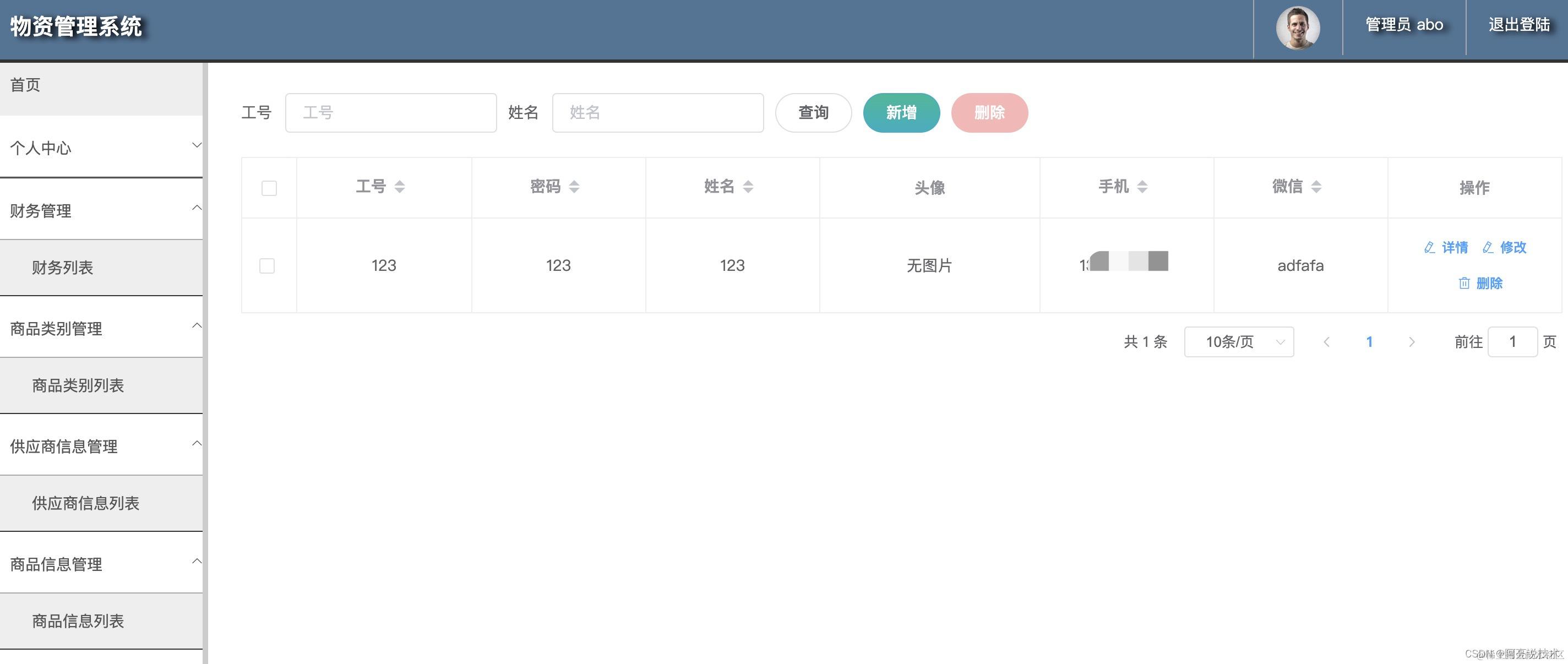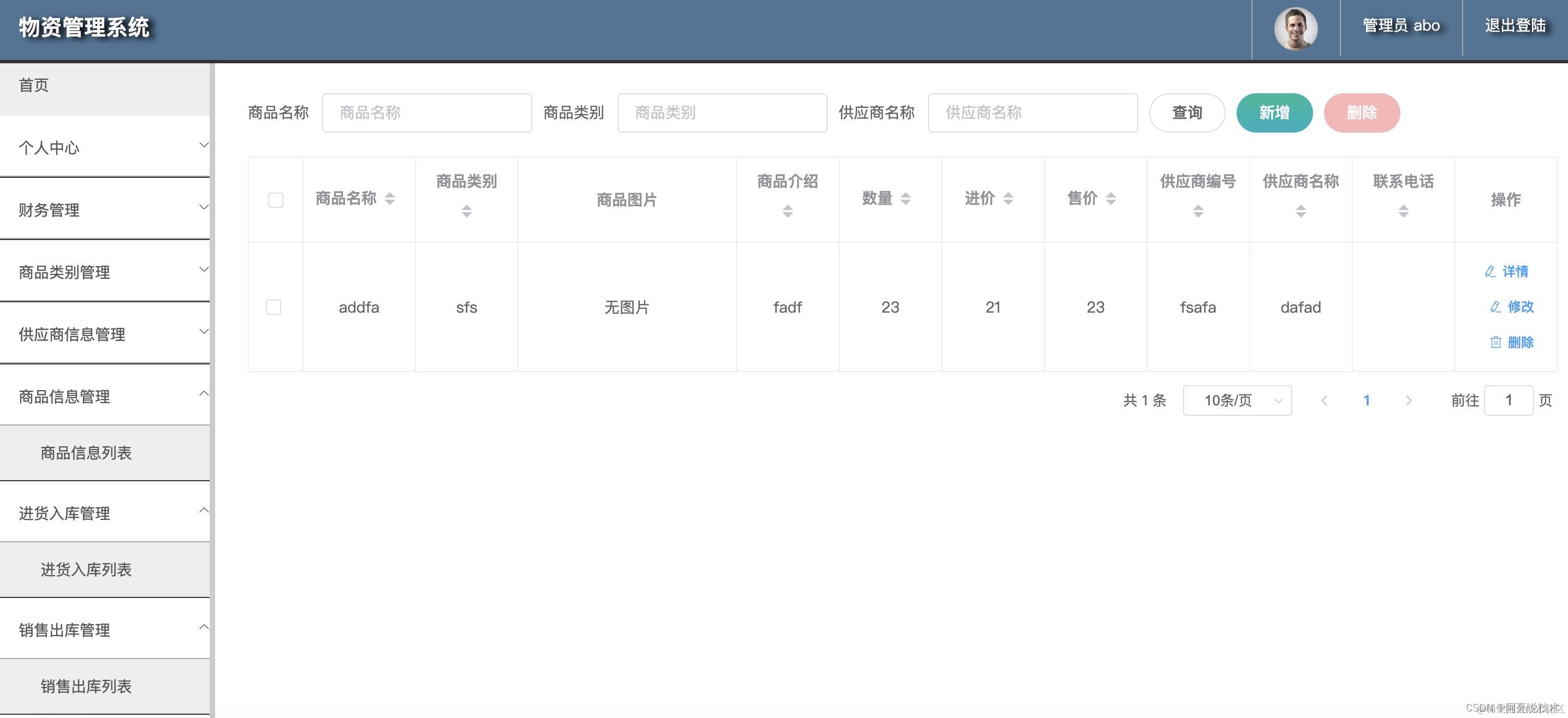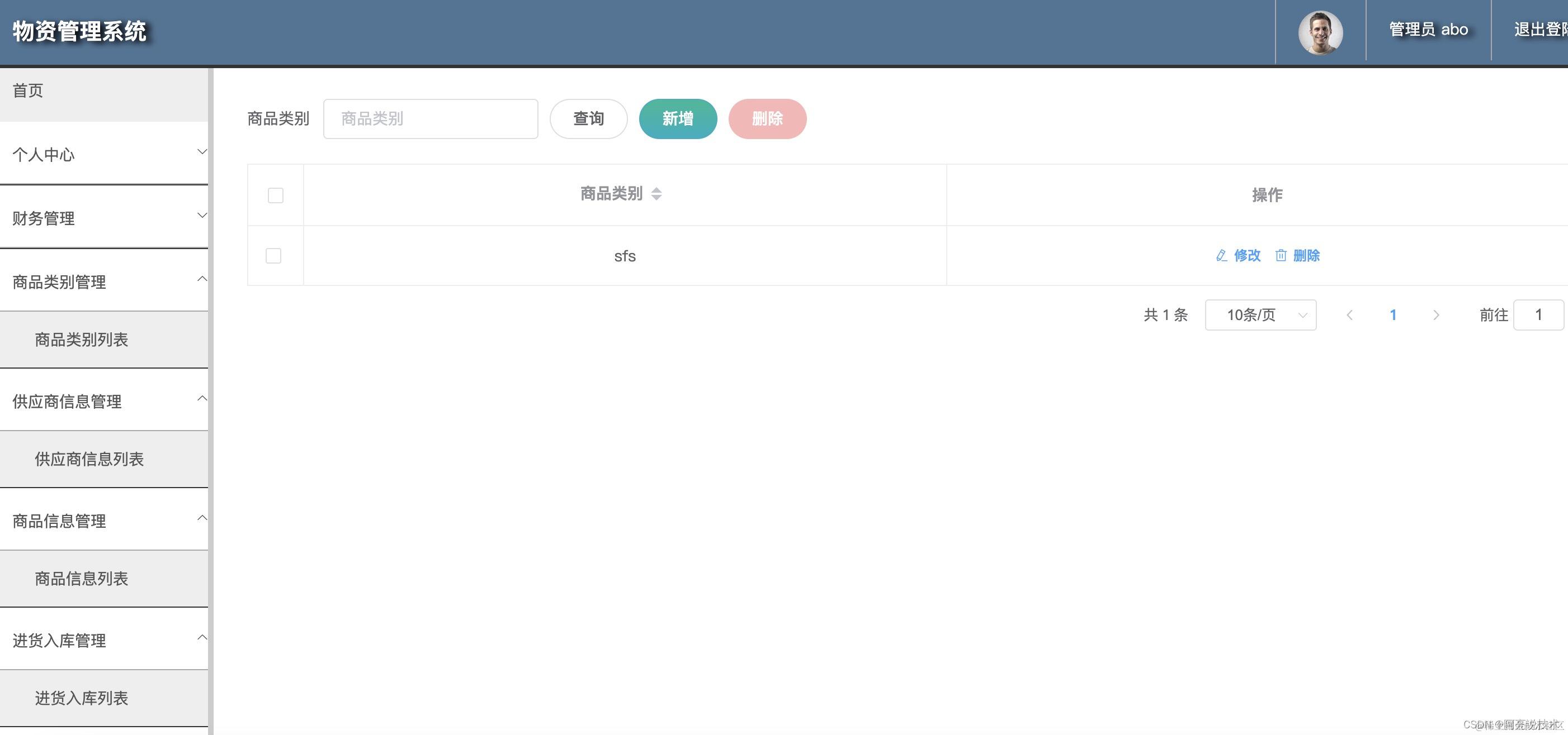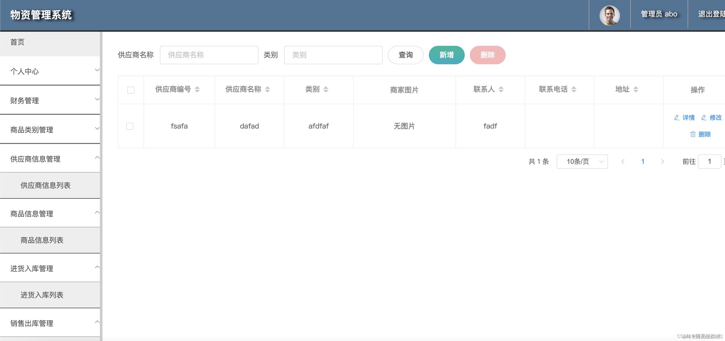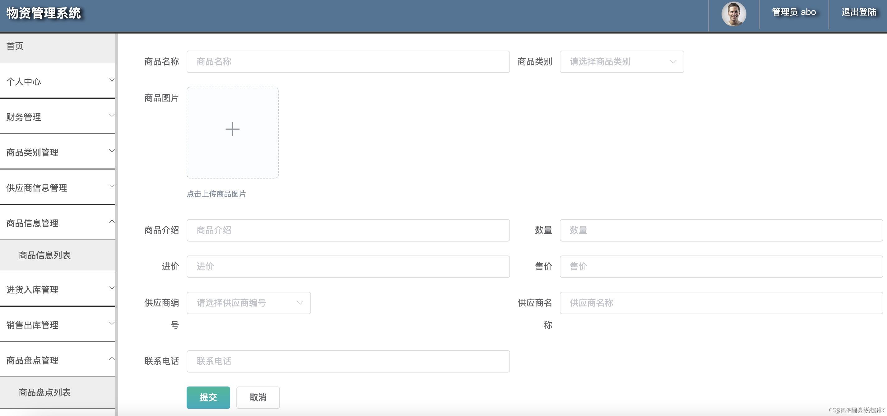 登录注册 个人中心 财务管理 商品类别管理 供应商信息管理