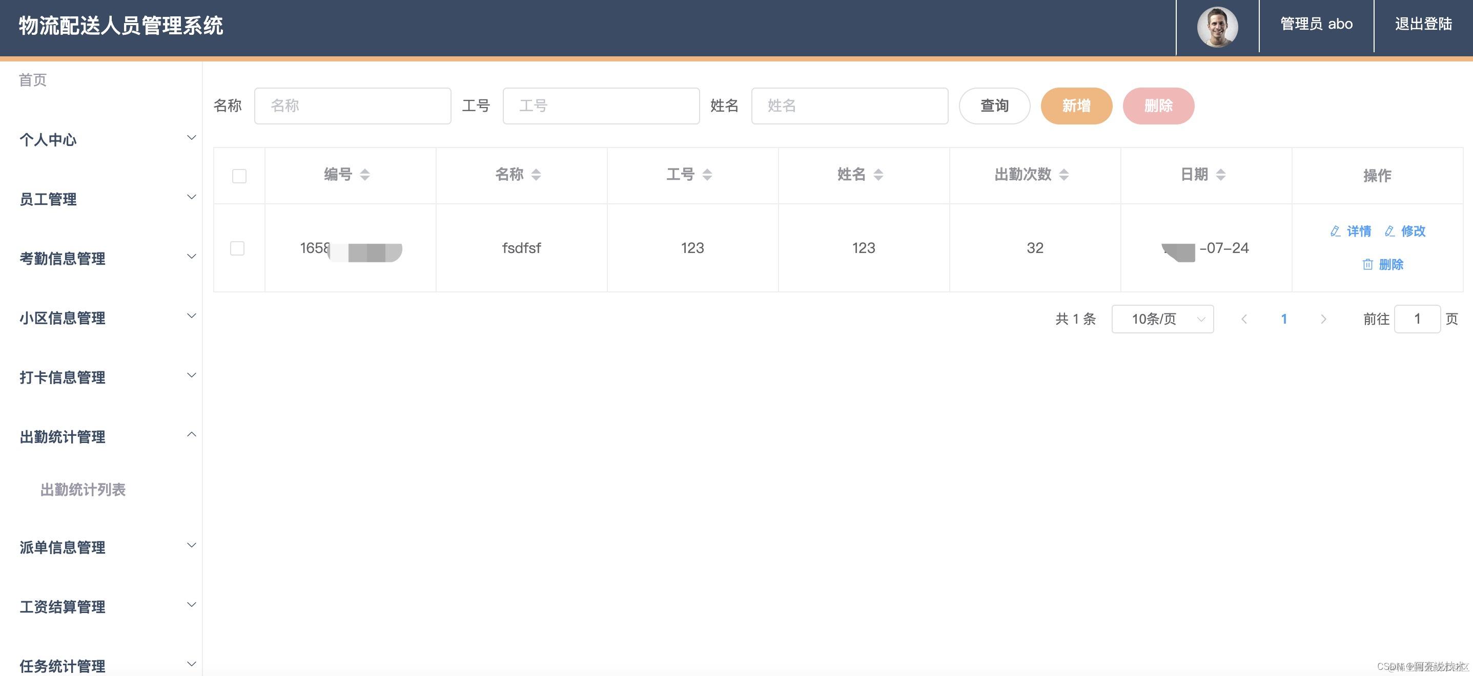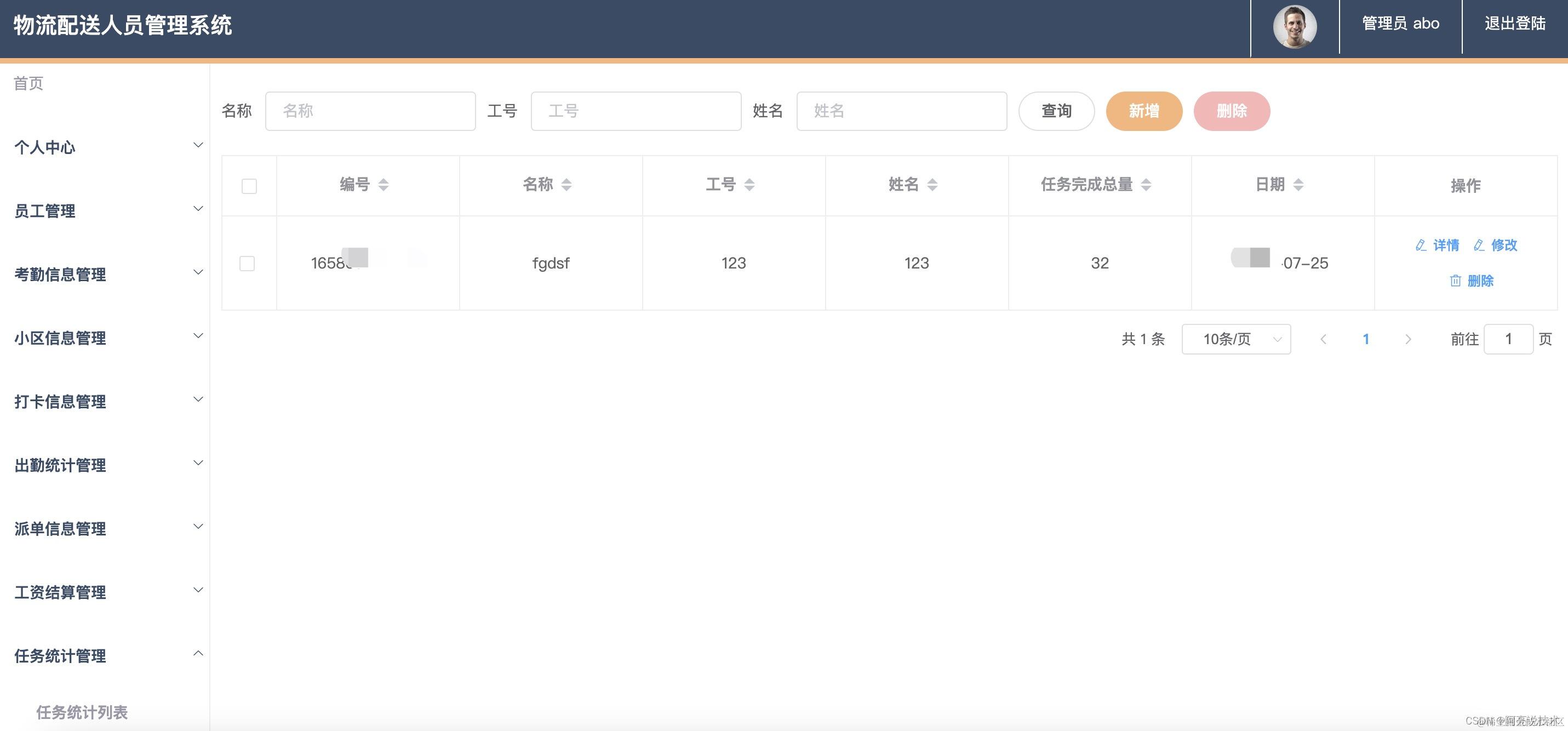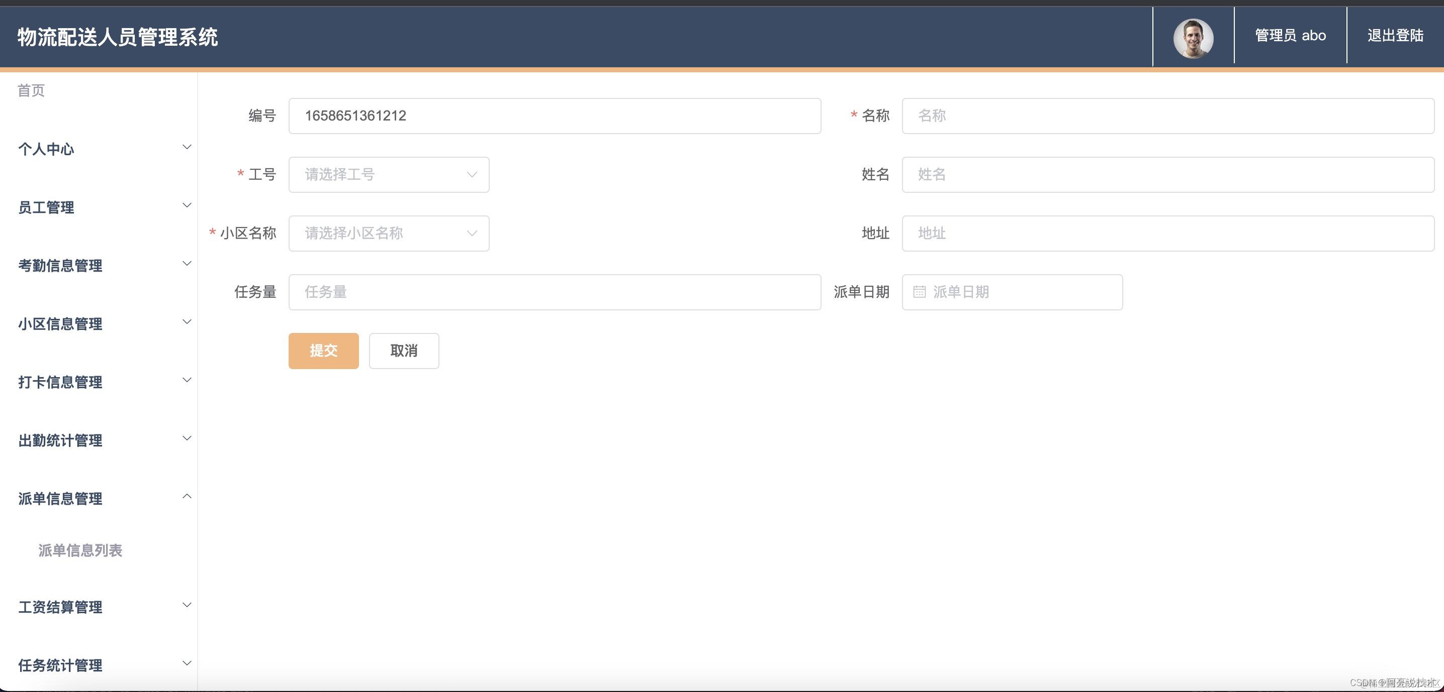 出勤统计管理 派单信息管理 工资结算管理 任务统计管理