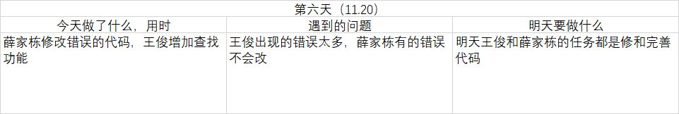 站立会议内容:确定明天王俊和薛家栋的任务都是修改和完善代码