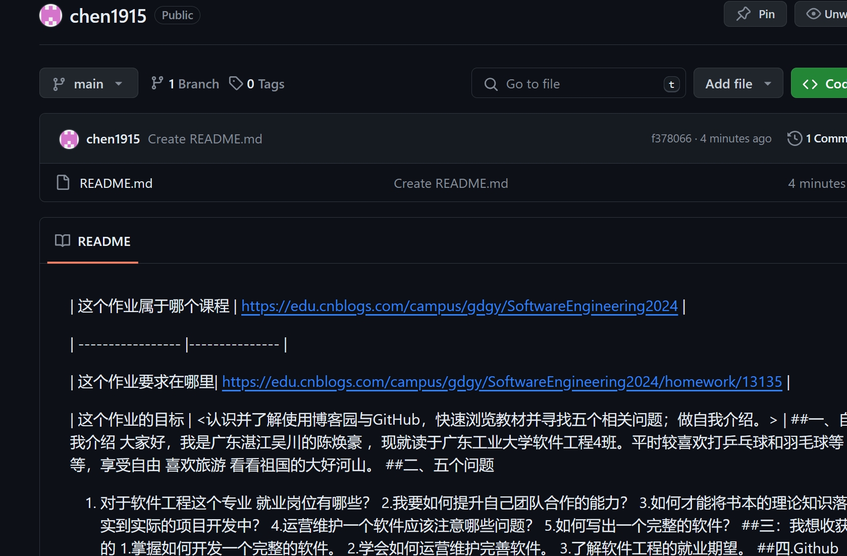 | 这个作业的目标 | <认识并了解使用博客园与GitHub,快速浏览教材并寻找五个相关问题;做自我介绍。> |
