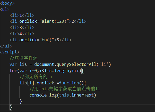 然后通过父标签ul 来绑定ul下所有的子标签 li