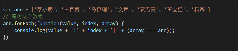 说明:这个遍历方法,跟使用for循环遍历效果是一样的,方法内部就封装了for循环,所以这个方法是没有返回值 - undefined,不会改变原理数组的值