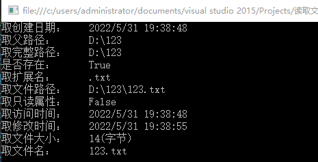 Console.WriteLine("取创建日期:\t"+fileInfo.CreationTime);
