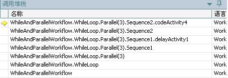 首先在codeActivity4上设一个断点,执行,while活动一共会执行两次,第一次与第二次的调用栈截图如下: