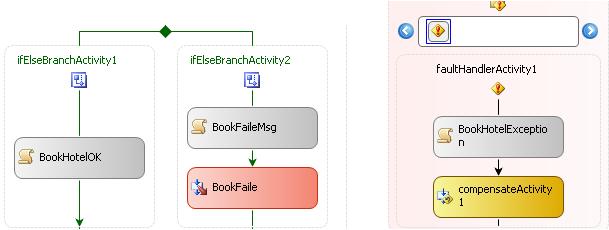 在开发工作流的时候,也会出现一些异常情况,WF也提供了这方面的活动,另外,除了正常流程外,还需要一些异常情况下才需要执行的流程,这就是WF中的补偿(Compensate)。