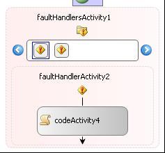 每个FaultHandler都对应一个异常类型。如果运行时抛出异常,工作流很快就会执行到WorkflowTerminated事件,如果不想这样,那么必须添加恰当(属性)的FaultHandler活动。当然,工作流实质上仍然会被停止,优点是工作流能带着异常工作,而不是异常抛出给运行时处理。